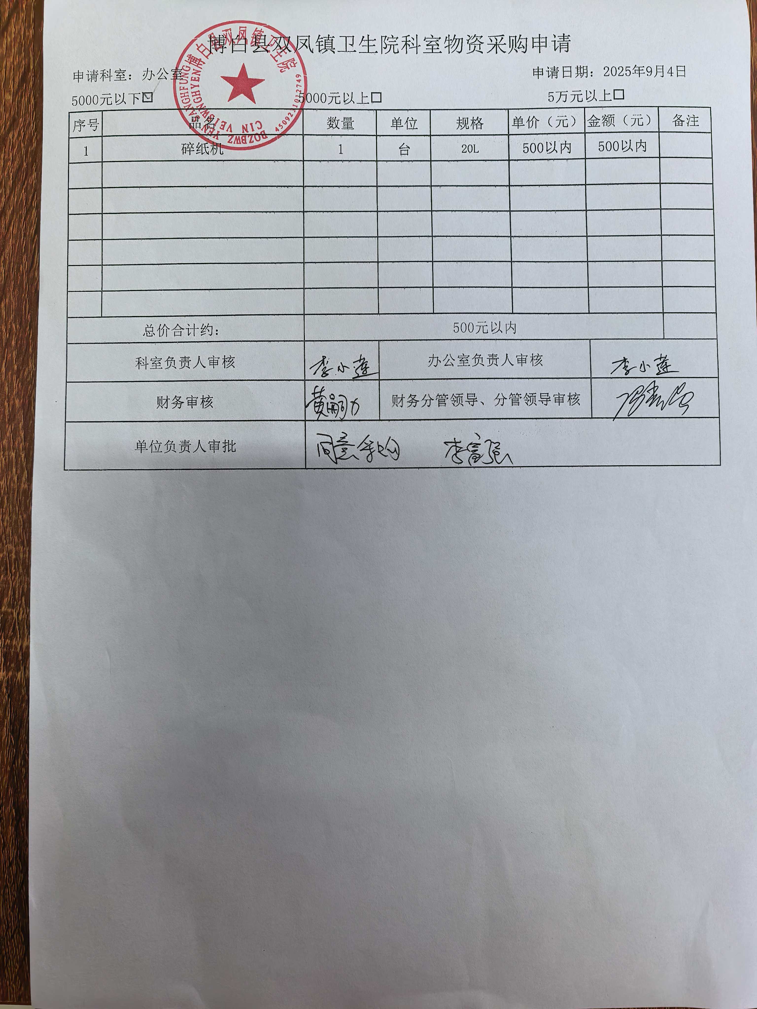 1 | 纸张粉碎机 | 1 | 0.05 | 2025年10月 | 是 | 碎纸机 |