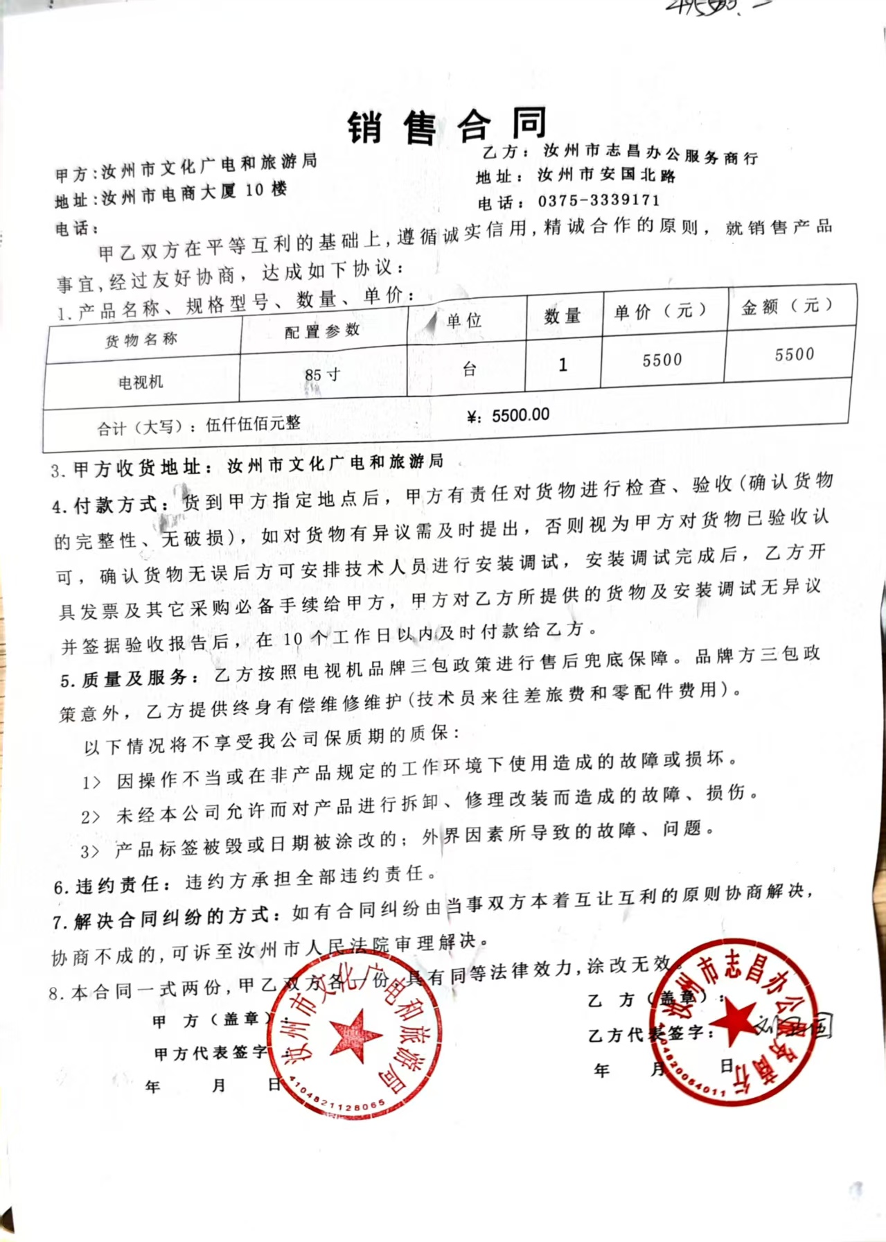 二、合同名称:电视机打印机采购 | ||||||||||||