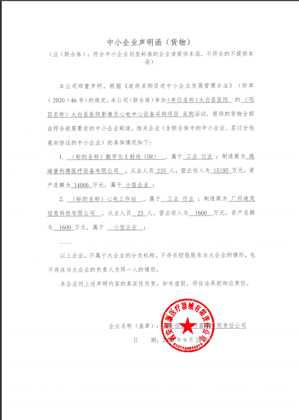 ******医院影像及心电中心设备采购项目中标(成交)明细.pdf ******医院影像及心电中心设备采购(发标稿).pdf 分项报价表.png 中小企业声明函.png