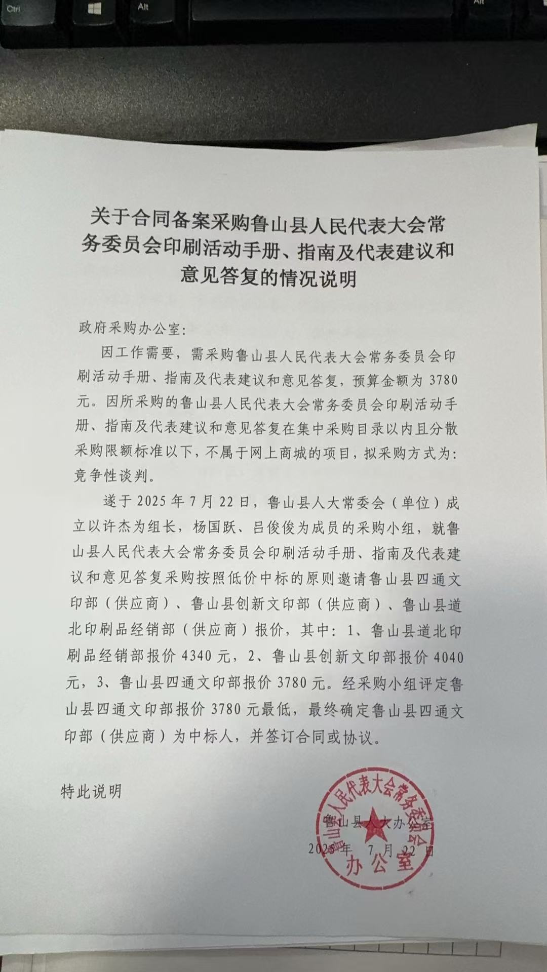 2.供应商(乙方):鲁山县四通文印部 | ||||||||||||||||||||||||