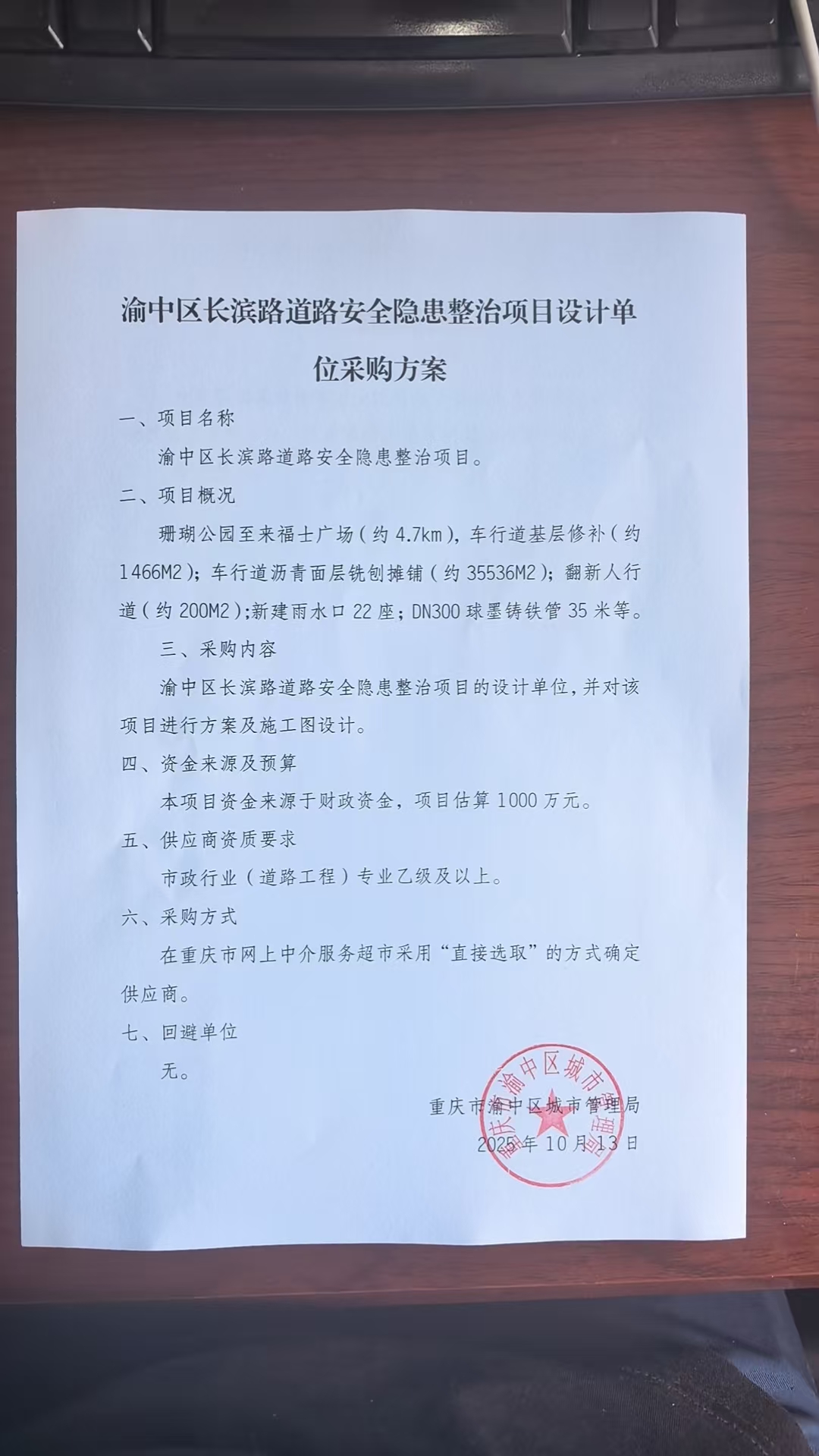 项目名称 | 渝中区长滨路道路安全隐患整治项目 |