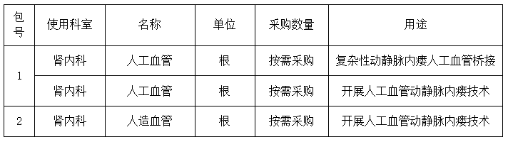 ******医院肾内科人工血管及人造血管采购项目(四次)