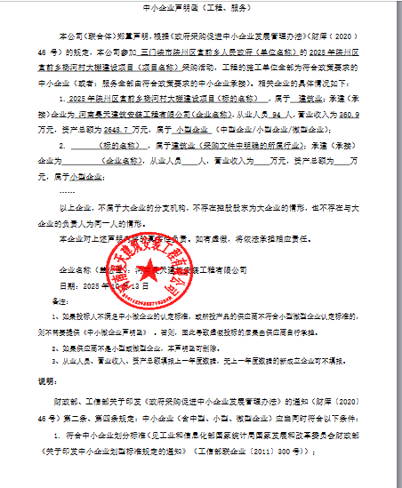 1 2025年陕州区宫前乡杨河村大棚建设项目 磋商文件及工程量清单所涵盖的全部内容 30日历天 李力 ******9897