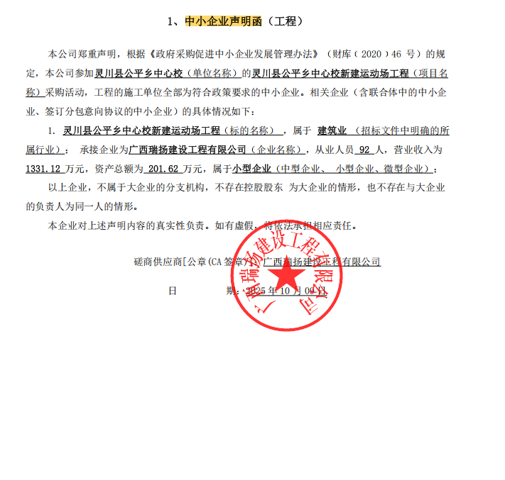 原公告的采购项目名称: 灵川县公平乡中心校新建运动场工程