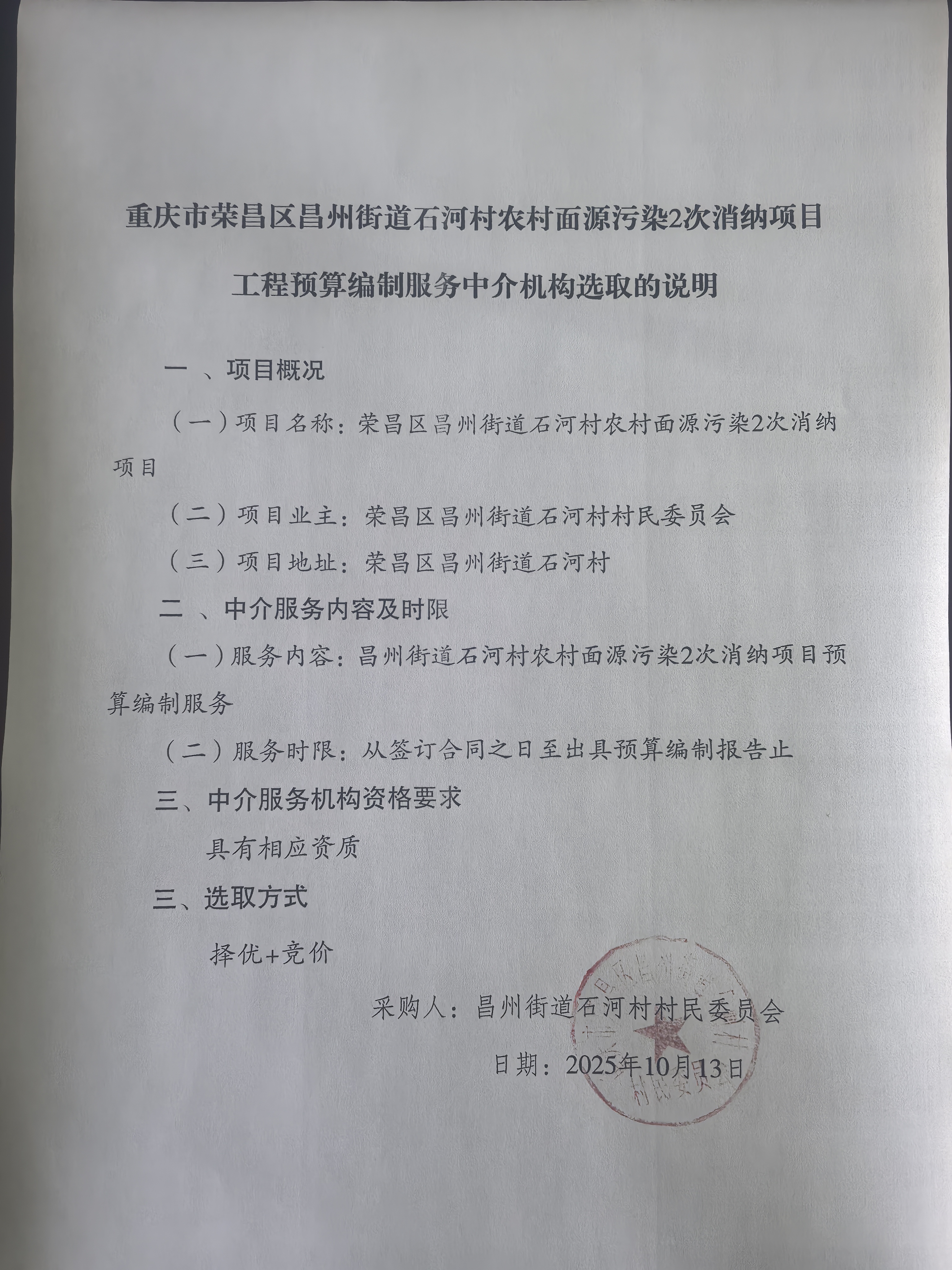 项目名称 | ******街道石河村农村面源污染2次消纳项目预算编制服务 |