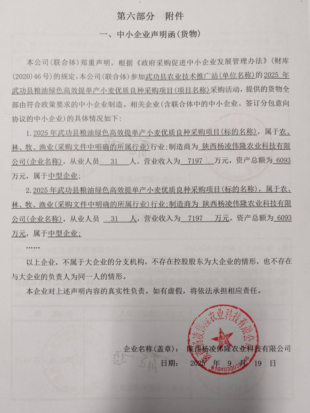 武功县农业技术推广站2025年武功县粮油绿色高效提单产小麦优质良种采购项目中标(成交)明细.pdf 中小企业声明函.jpg 2025年武功县粮油绿色高效提单产小麦优质良种采购项目--单一采购文件.pdf