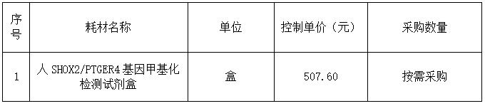 ******医院临床分子(基因)检测中心人shox2/ptger4基因甲基化检测试剂盒采购项目资金已落实。根据采购人内部管理规定,本项目采取询比方式进行采购,现发布询比公告。