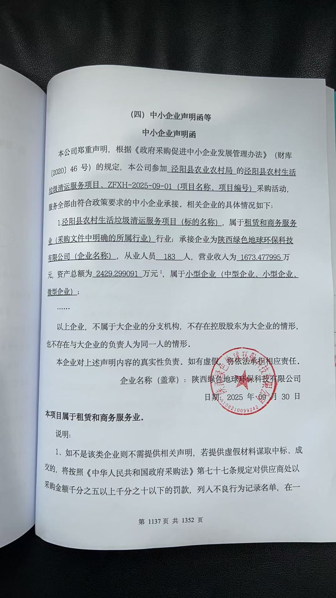 ******农村局泾阳县农村生活垃圾清运服务项目中标(成交)明细.pdf 泾阳县农村生活垃圾清运服务政府采购招标文件9.5.pdf 泾阳县农村生活垃圾清运服务项目-中小企业声明函.jpg