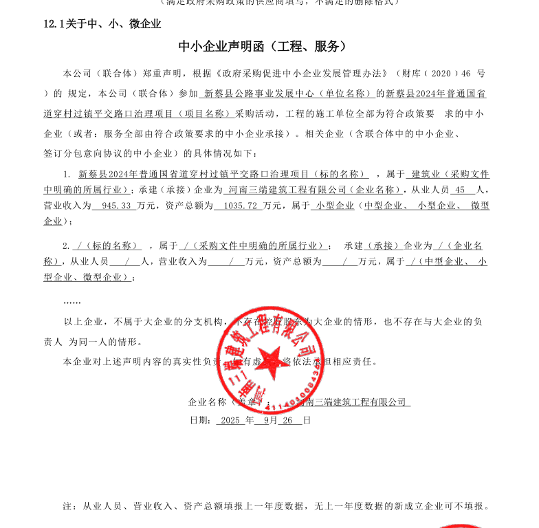 2、采购项目名称:新蔡县2024年普通国省道穿村过镇平交路口治理项目 | |||||||||||||||||||||||||||||||