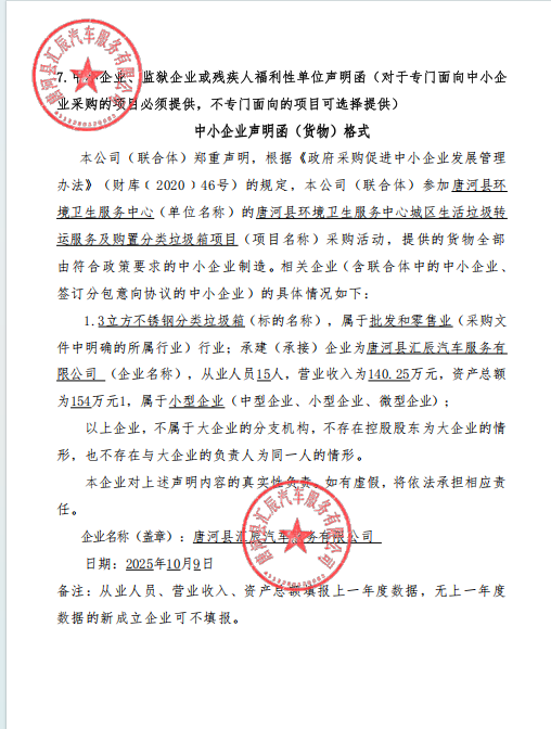 唐财采购公开-2025-49-2 | 购置100台3立方不锈钢分类垃圾箱(详见附件) | ******有限公司 | ******街道新春南路920号 | 610,000.00 | 元 | 评审总得分:80.1分 | ||||||||||
