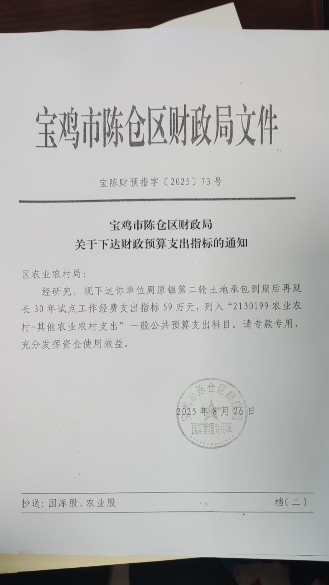项目名称:陈仓区周原镇第二轮土地承包到期后再延长30年试点项目