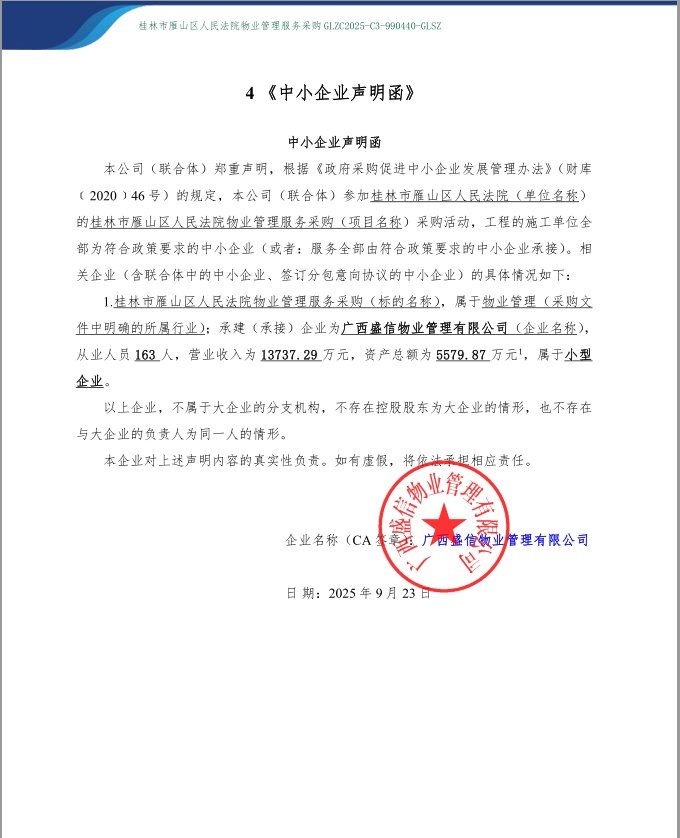 桂林市政府集中采购中心关于桂林市雁山区人民法院物业管理服务采购(GLZC2025-C3-990440-GLSZ)中标(成交)结果公告